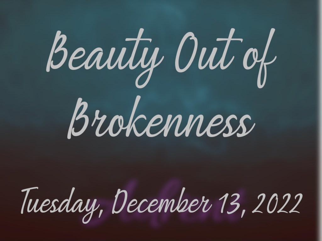 Out of brokenness, God can bring about something beautiful, something unexpected, that will cause people to turn to His Son. My hope for you this season is that God will take the broken parts of my life, and yours, and turn them into something beautiful.